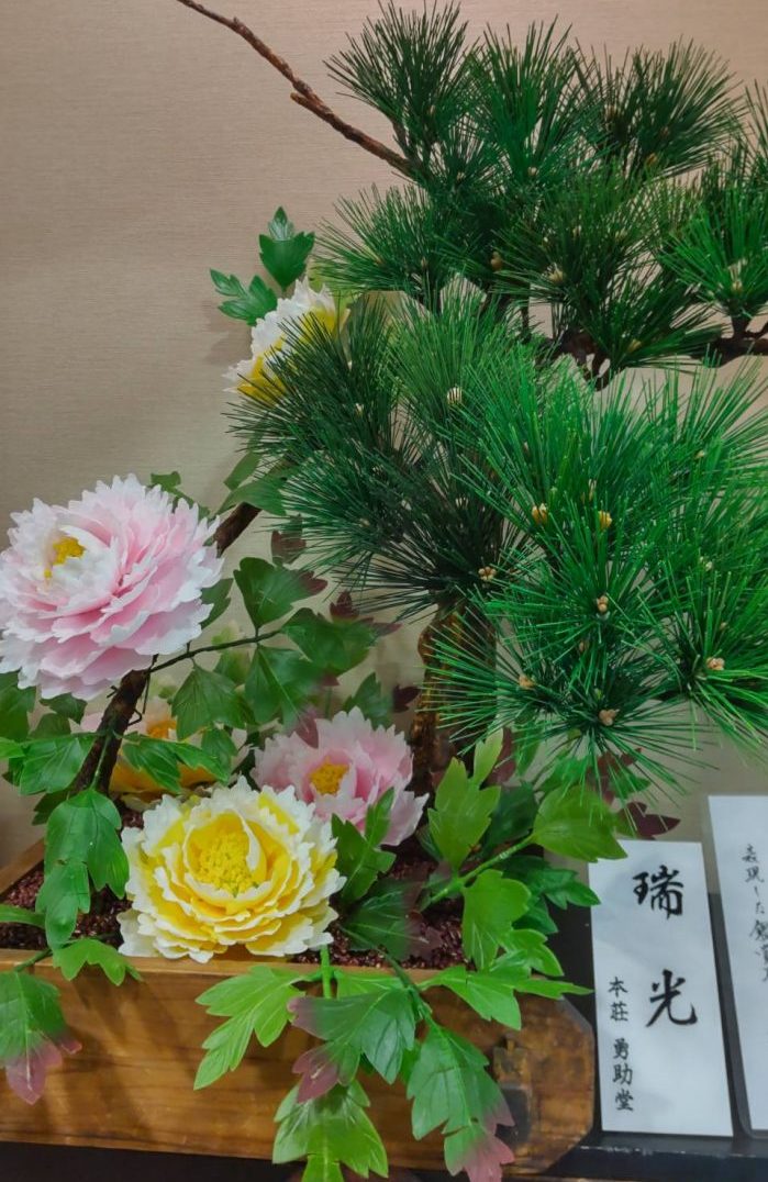 和三盆という作品で土の部分には小豆が使われていて、花や葉には砂糖が使われているそうです。